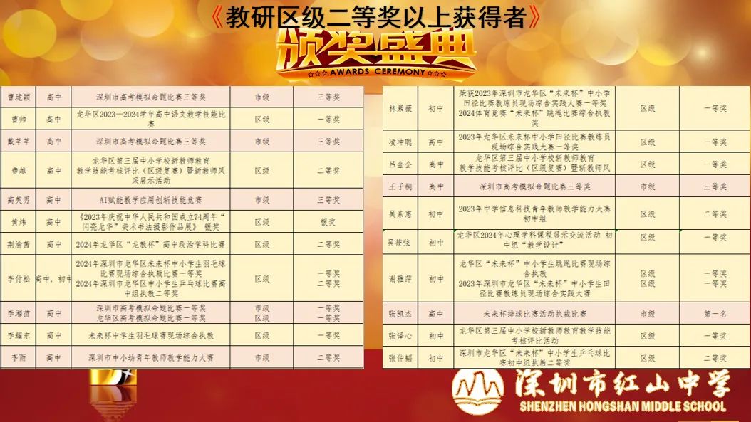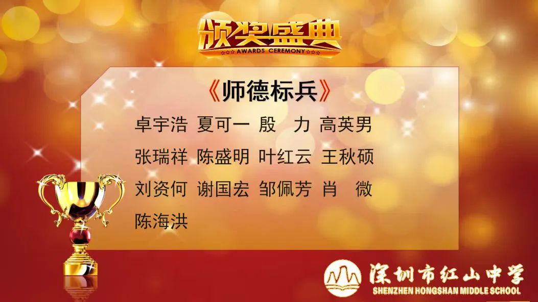 师德标兵、优秀科组长、优秀教师、优秀班主任等奖项,都是对老师辛勤工作的肯定和鼓励,每一份荣誉背后,都是老师们对教育事业的热爱与执着。红山教师用实际行动诠释了“学高为师,身正为范”的深刻内涵。