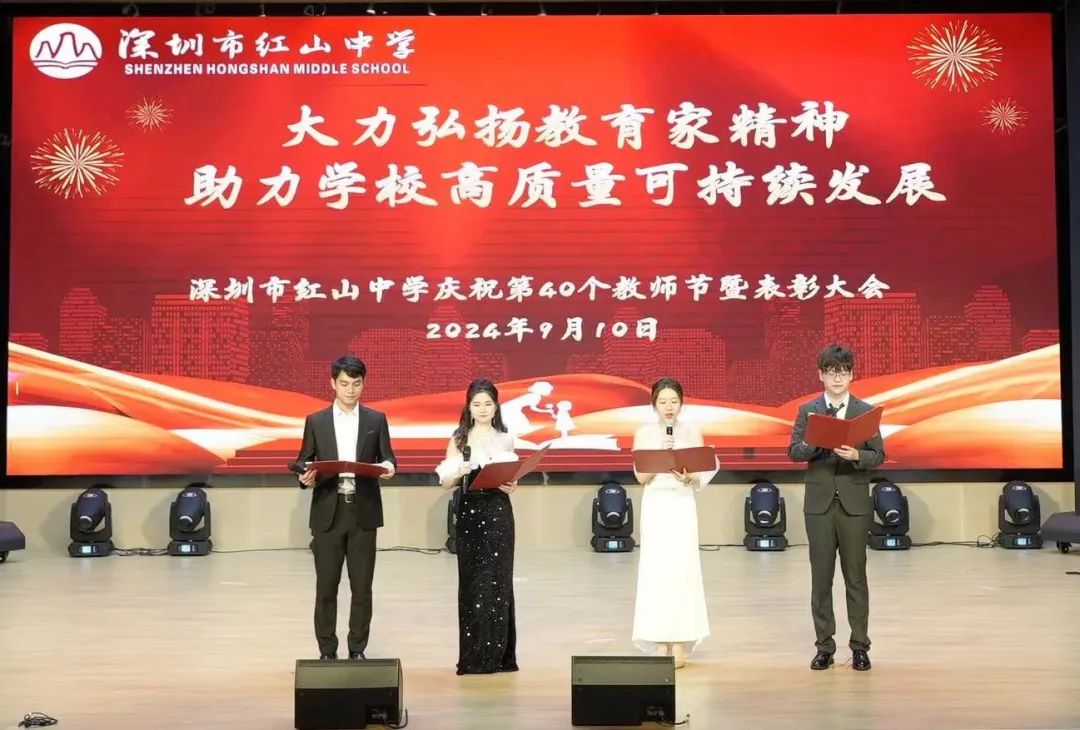 四十年春风化雨,四十年桃李芬芳,深圳市红山中学庆祝第40个教师节暨表彰大会。9月10日下午,学校全体教职工欢聚一堂,共同颂扬尊师重教之美德,传承春风化雨之精神。大会在庄严的国歌声中拉开序幕。