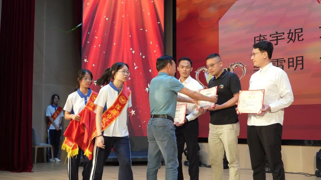大会对过去一年中在学校教育教学、科研竞赛、师德师风建设等方面表现突出的教师进行了表彰,邱书记、何校、叶校为获奖教师颁奖。