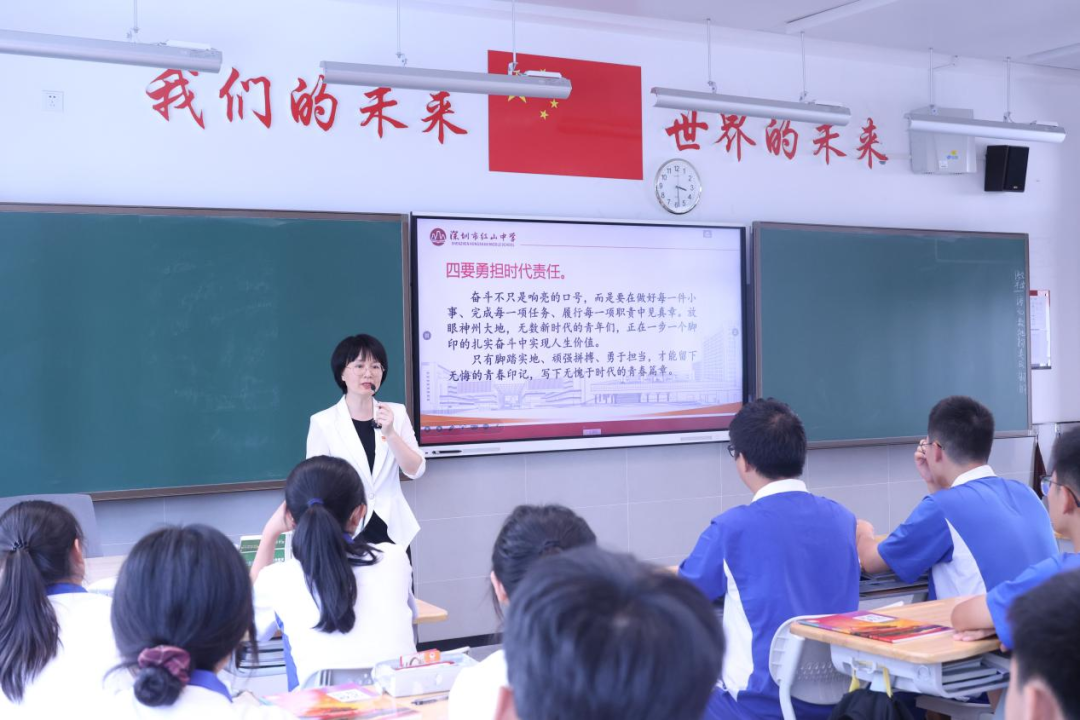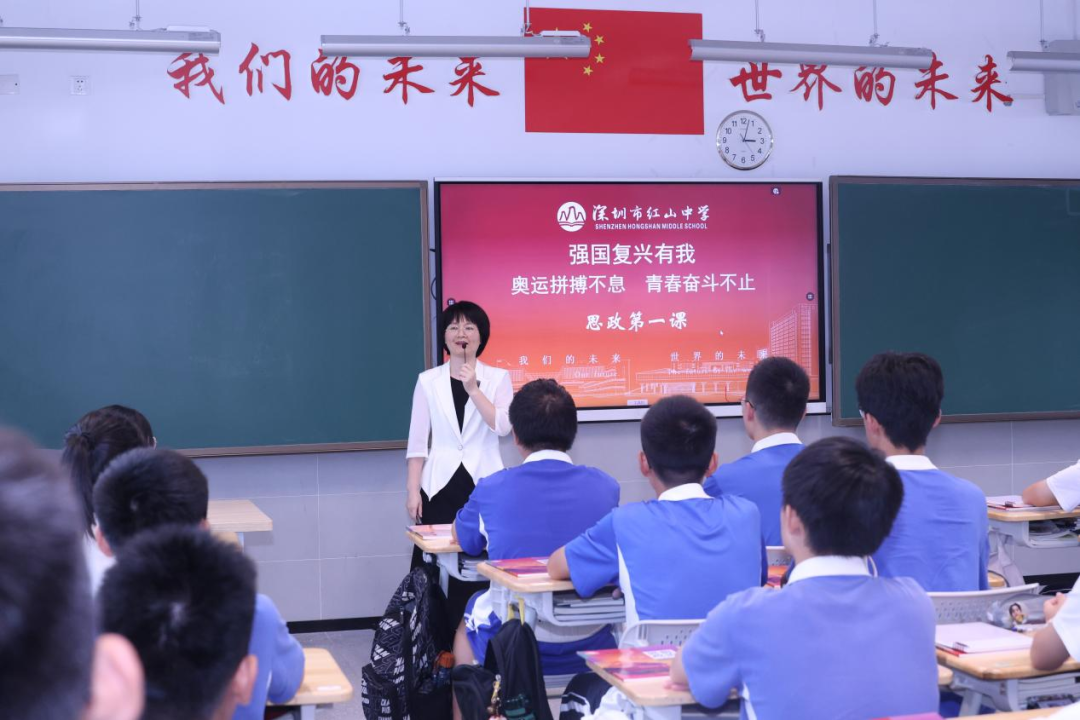 金风送爽,我们迎来了充满希望与挑战的开学季。为深入贯彻落实教育部关于推进“大思政课”建设的指示精神,引导同学们践行社会主义核心价值观,帮助同学们树立远大理想,以饱满的热情、奋进的姿态踏上新的征程,在这个崭新的起点上,我校邱小琴书记、何浩校长走进课堂为同学们讲授“开学第一课”。邱小琴书记从奥运说开去,鞭策红山学子披荆斩棘奋勇前行;何浩校长则在课上指出了科技兴国的重要性,激励同学们做未来的主人。此次“开学第一课”不仅是一次思想的洗礼,更是一次精神的振奋,让同学们更加坚定地走向未来。